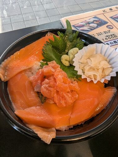水族館にあるとこで、お昼。 サーモン丼950円。 これに味噌汁つきます。 オカンはマグロ丼。 イマイチだったらしいっす。 白飯大量に残してたので、娘は残飯処理かきこみましてよ。 なんかかまぼことかお土産に買った。 クラゲの下敷きも! なんか行った記念…
